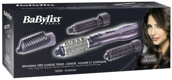 | Прочие особенности и свойства | Если вы подбираете универсальный инструмент для приведения волос в порядок в домашних условиях быстро и эффективно, рассмотрите модель Babyliss AS121E. Это фен-щетка, с помощью которой ваши волосы будут быстро высушены, как после мытья, так и после дождя или снега. Также вы сможете делать любые прически, бережно укладывая волосы. Корпус устройства выполнен из прочного пластика приятного на ощупь. На корпусе есть кнопка подачи воздуха, а также ползунковый включатель. |