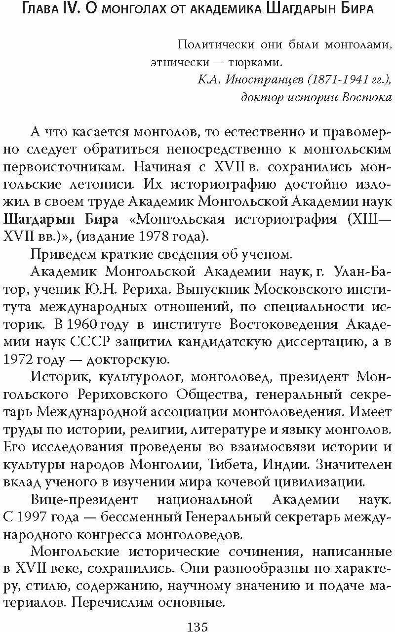 Книга написана начитанным дилетантом, который знаком с методами исторической науки скорее по популярной литературе, чем по научным монографиям. Самое главное, автор пишет в дискурсе обществоведения Казахстана, а не России. "Казахоцентричность" проявляется в странном переплетении двух очень разных вопросов - об этничности монголов XII-XIII вв. и о характере "монголо-татарского ига". Эти два вопроса тесно взаимосвязаны для казахов, которым очень лестно считать себя потомками создателей великой средневековой империи. А вот для россиян сюжет, кем были Чингисхан/Батый, монголами или тюрками, малозначим, зато утверждения о "мягком вассалитете" Орды над русскими княжествами едва ли не оскорбительны. В любом случае научному пониманию обеих проблем данная книга мало поможет. Автор понимает аргументацию как, прежде всего, сбор цитат из самых разных источников, самостоятельно же строить аргументацию он умеет плохо (вместо доказательств идут повторы априорного тезиса). Так что книга может быть полезна лишь для очень предварительного знакомства с обеими проблемами - и про монгол/тюрок, и про "иго".