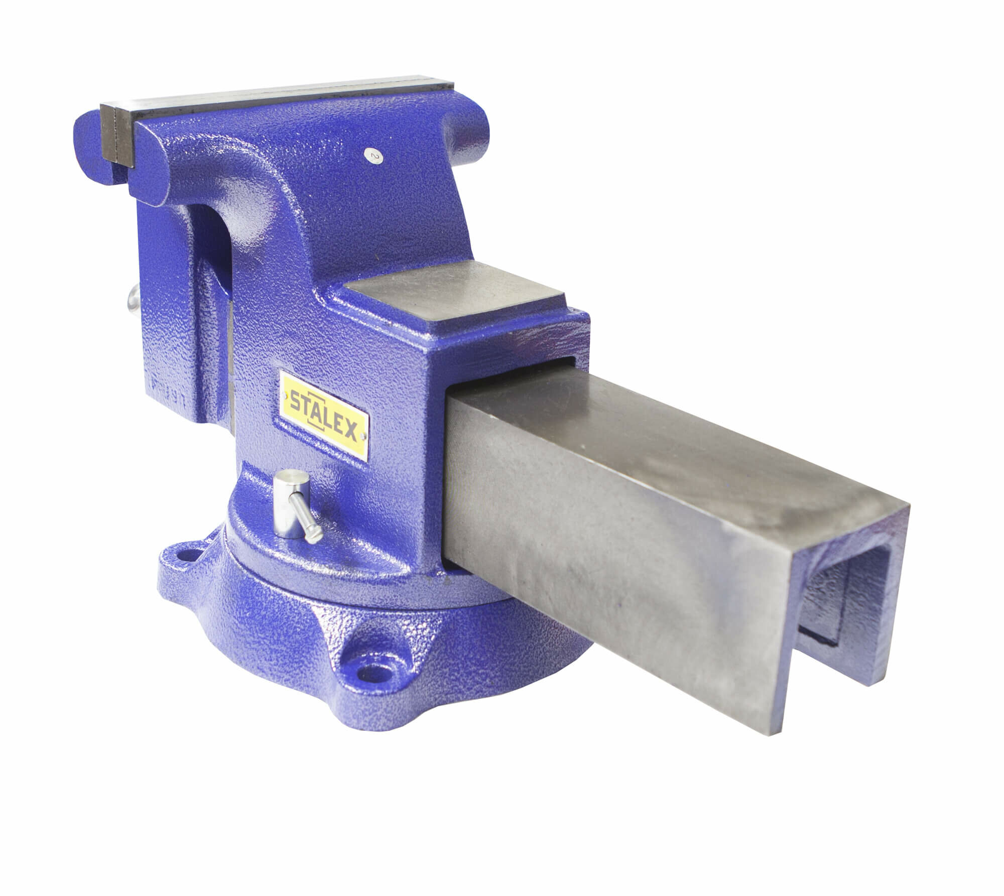 Слесарные тиски Stalex «Гризли» предназначены для применения в различных условиях: от домашней мастерской или автосервиса до крупных предприятий. Изготовлены из высокопрочного специального чугуна. Закалённые и шлифованные губки имеют насечки для прочного крепления детали. Порошковая покраска на тисках обеспечивает образование ударопрочного и антикоррозийного покрытия, которое работает в широком температурном диапазоне, при этом резкие смены температуры не влияют на качество порошковой краски. Закрытый ходовой винт тисков защищен от попадания металлической стружки и опилок. Тиски имеют возможность поворота на 360° относительно своего основания. Зев тисков предназначен для крепления трубы в тисках.