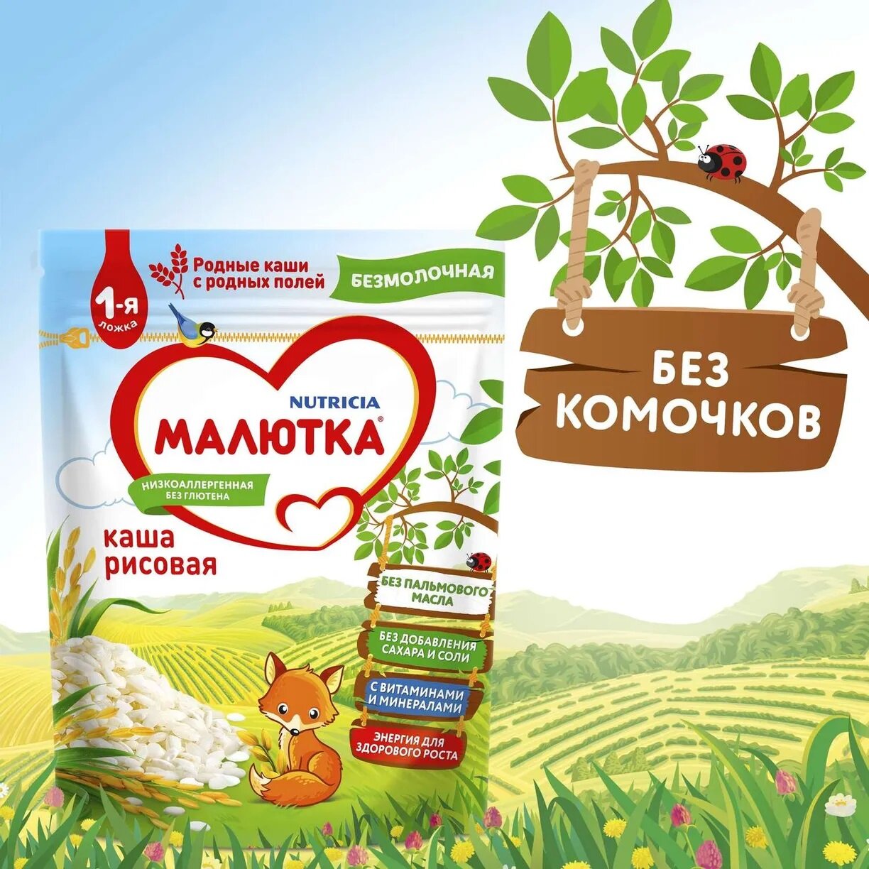 Каша Малютка безмолочная рисовая 200 г пауч (132636)