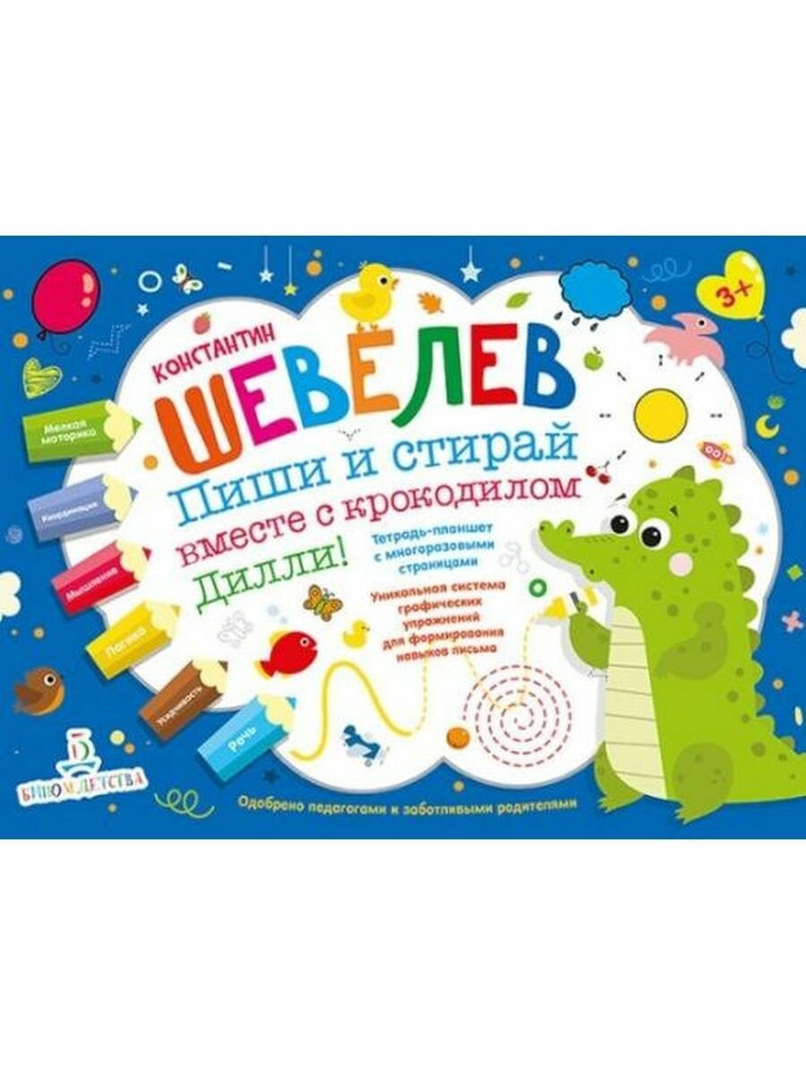 Пиши и стирай вместе с крокодилом Дилли. Тетрадь-планшет с многоразовыми страницами (Константин Валерьевич Шевелев); БИНОМ ДЕТСТВА, 2020