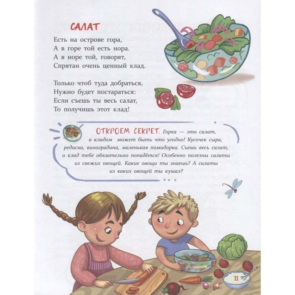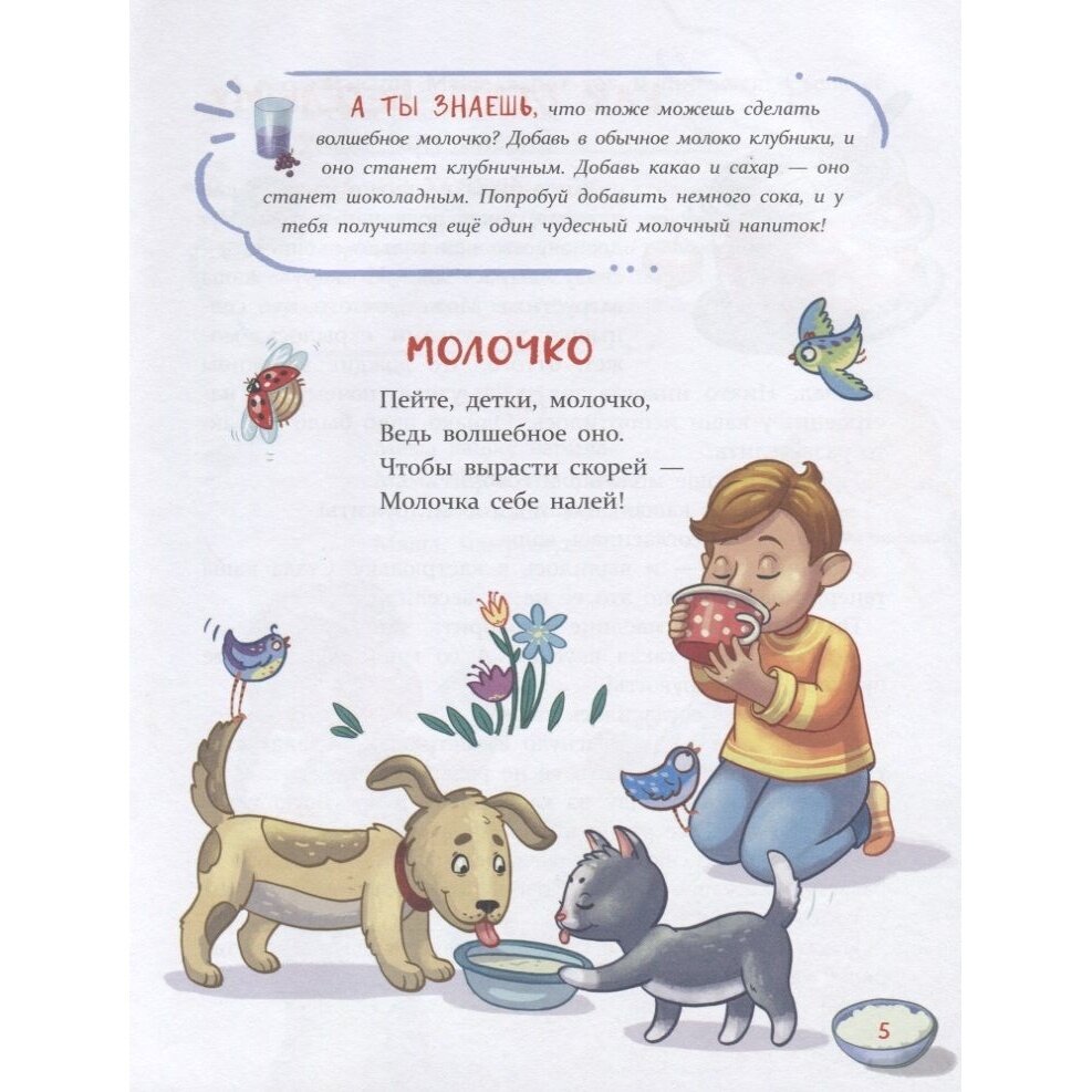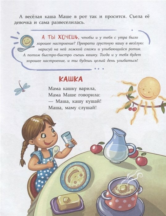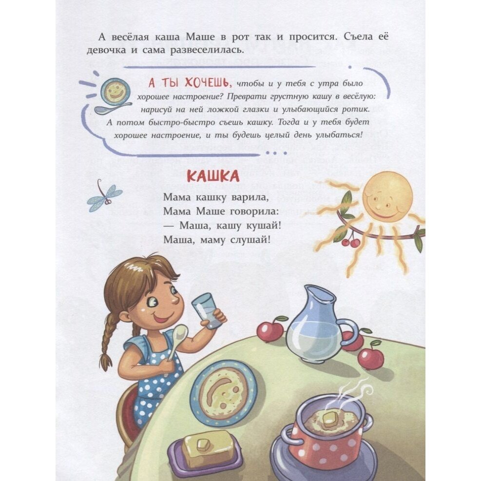А ещё в нашей книге есть небольшие стихи. Попробуйте подставить в них имя своего ребёнка и читать их во время кормления. Надеемся, что ваш малоежка очень скоро начнёт кушать с аппетитом и ещё просить добавки! Приятного аппетита!