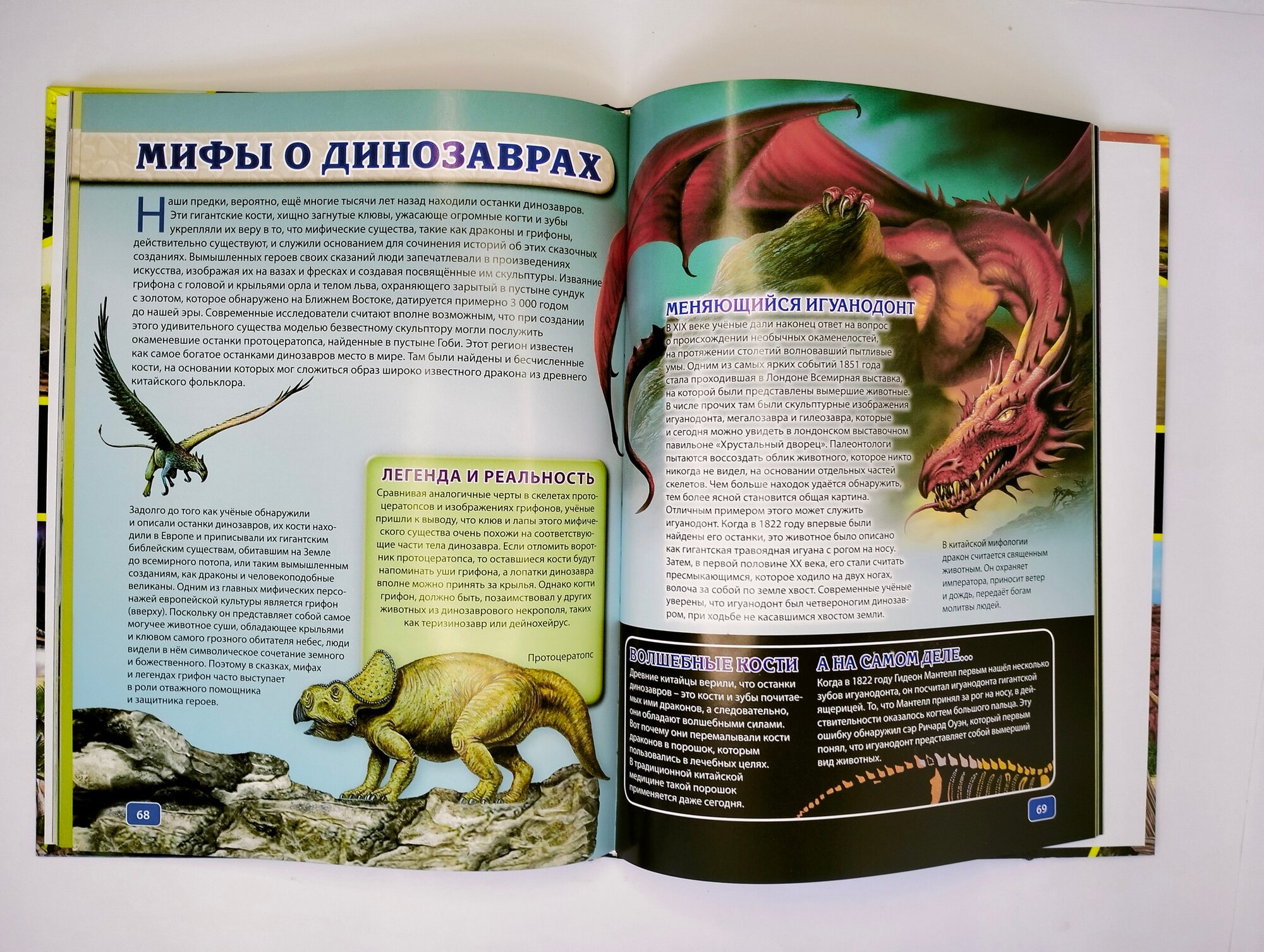 Так же мне очень понравилось само содержание энциклопедии: тут и рассказывается общие факты про динозавров, отдельно рассказывают про строение, про способы общения, размножения и многое-многое другое. И это все помимо простого описания каждой разновидности. У сына любимые главы про рекорды в мире динозавров, про раскопки и про виртуализацию. А мне вот понравились глава про мифы и легенды. К тому же в книге очень хорошие иллюстрации: их достаточно много и они очень точные.