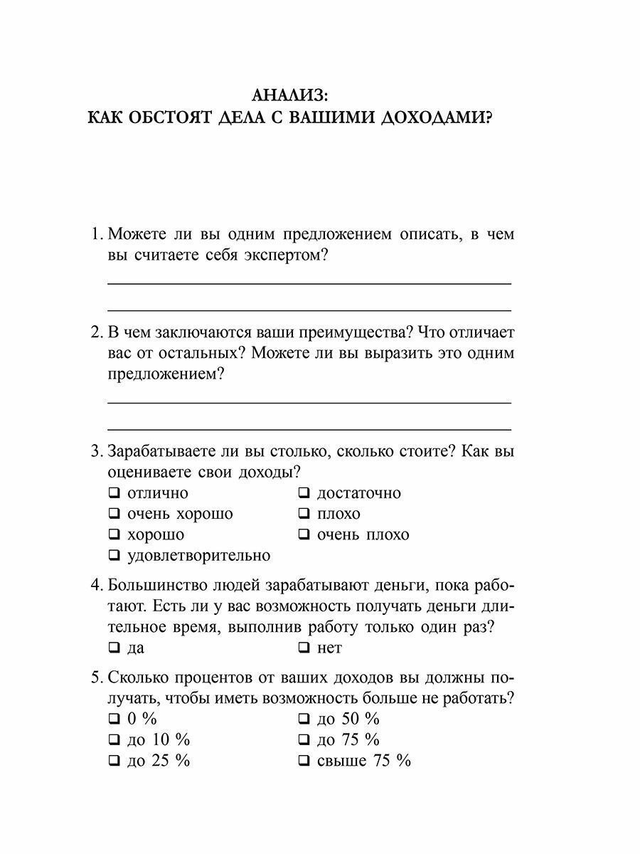 Новая книга написана в стиле его первого бестселлера "Путь к финансовой свободе". Он обращается в ней к наемным работникам, предпринимателям, представителям свободных профессий и даже к безработным. Если вас не устраивает ваша зарплата, карьера и жизнь - значит, она для вас.