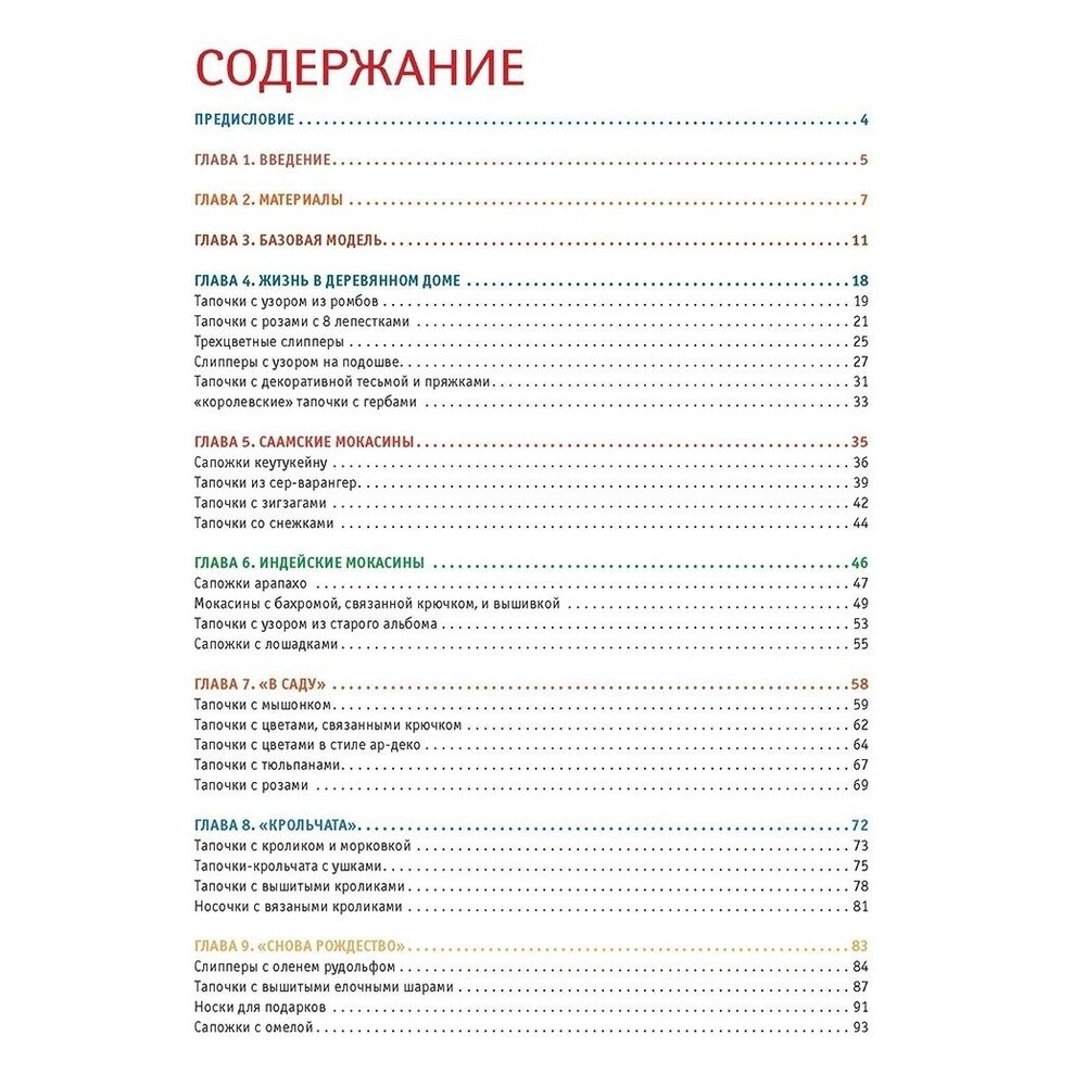 Интересная книга с необычными моделями домашней обуви. Мне очень понравились узоры и цветовые решения, сразу же захотелось связать несколько моделей. Самое приятное, что все многообразие вариантов основывается на трех базовых моделях. Книга очень красочная, с качественными цветными фотографиями.