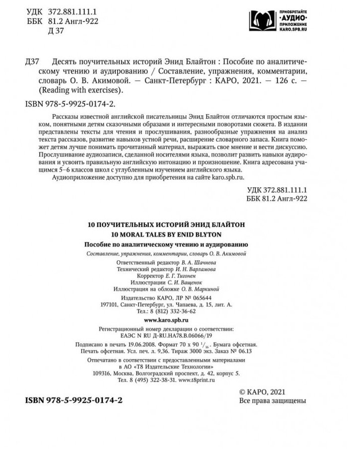 Сервис сравнения цен СкидкаГИД предлагает сравнить цены на товар «Книга: 10 поучительных историй Энид Блайтон. Адаптированное чтение на английском языке (Ващенок С.И. (иллюстратор)); Каро, 2021»