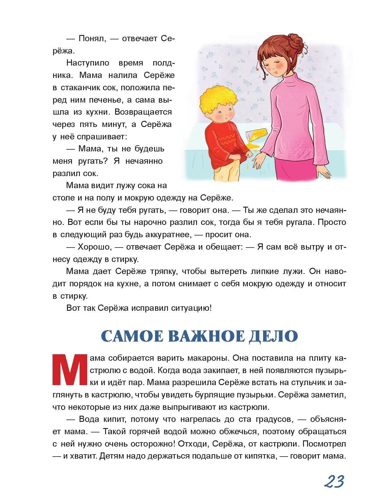 Книга рассчитана на детей 5-6 лет, но мне кажется и в 7 лет будет актуальна, т.к. в книге доступным языком ребенку объясняются правила поведения, со взрослыми и между детьми, рассказывается строение солнечной системы, про микробом, иммунитет.