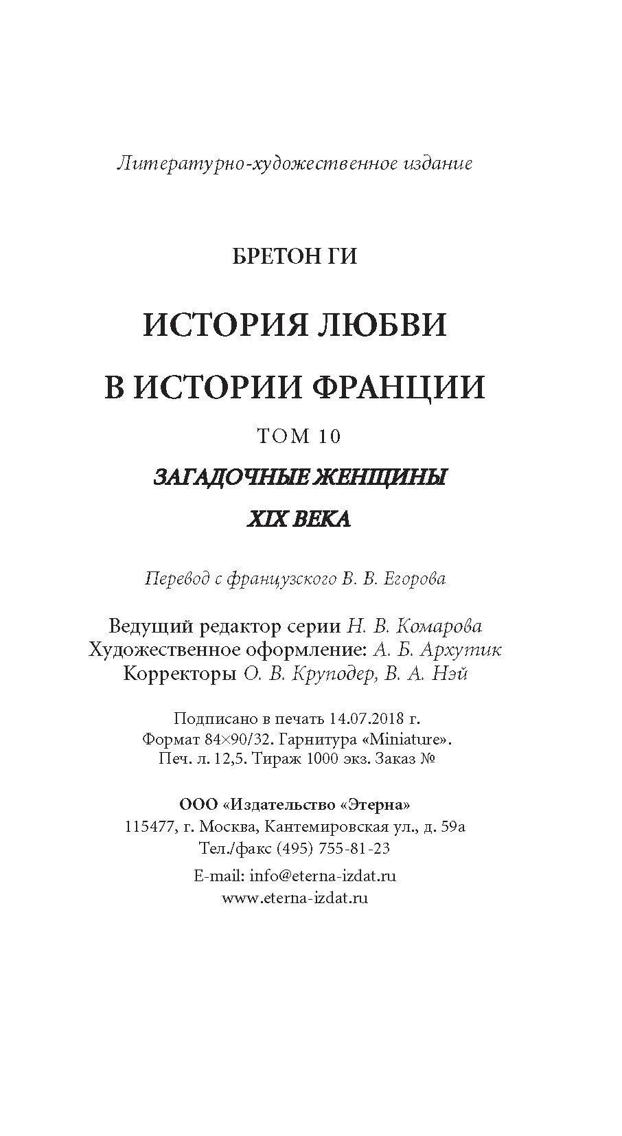 История любви в истории Франции. Книга 10. Загадочные женщины XIX века (Бретон Ги); Этерна, 2018