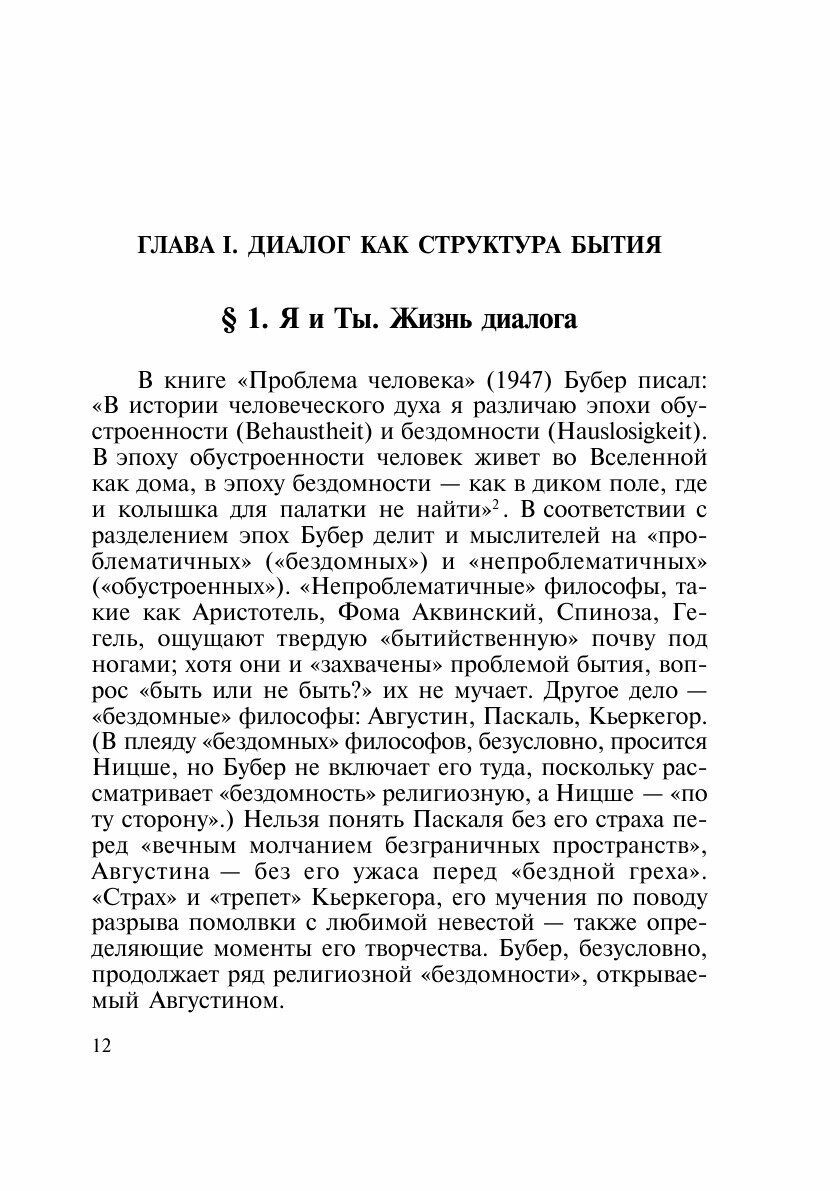 Работа посвящена творчеству выдающегося философа и теолога Мартина Бубера (1878-1965). Ключевая тема творчества Бубера – онтология диалога – есть у него как бы точка схода всех линий перспективы, иначе говоря, всех классических тем философии и культуры века, получающих в этой точке свое, оригинальное буберовское решение или преломление. Знаменитая книга Бубера «Я и Ты» (1922 г.) является теоретическим источником многих современных дискуссий о диалоге и межличностной коммуникации. Диалогическая онтология человеческого существования позволяет понять философию Бубера как целостность и представить его изыскания не только в области философии и теологии, но также и в области психологии, социологии, педагогики, гебраистики.