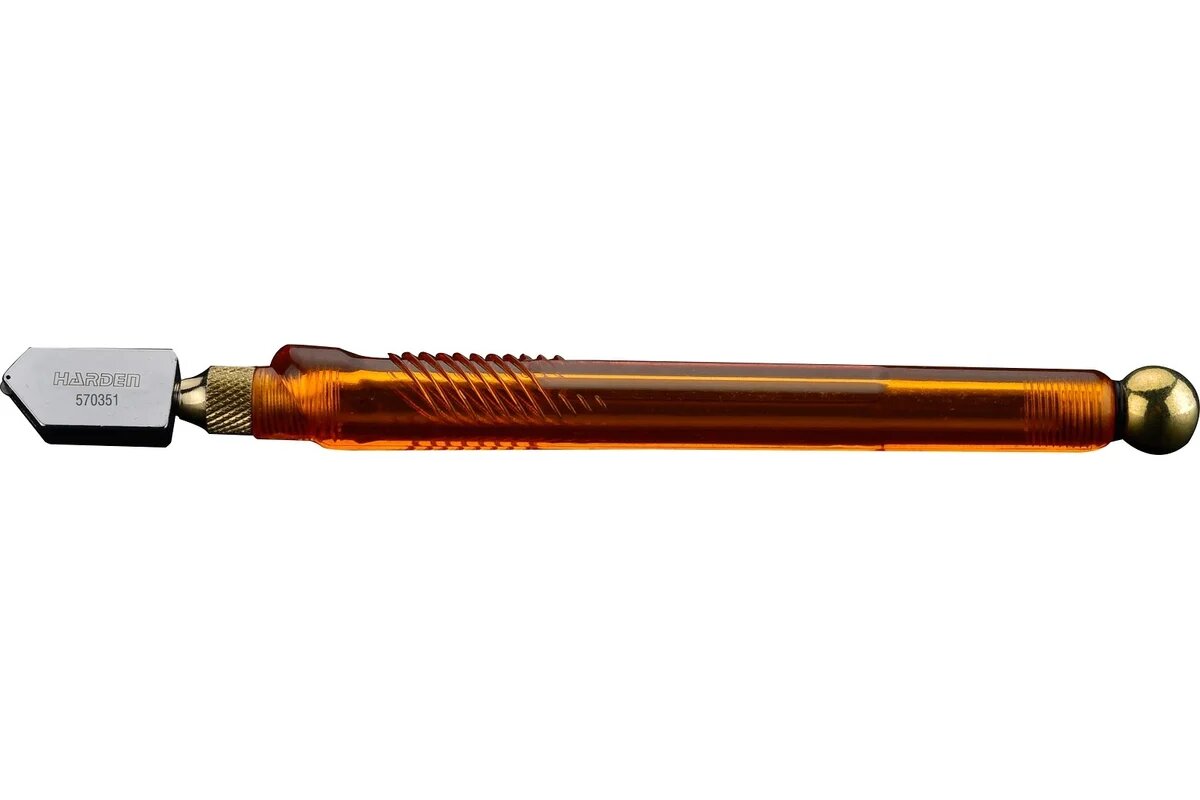 HARDEN - это профессиональный масляный стеклорез длиной 175 мм. Высококачественное режущее колесо выполнено из карбида вольфрама YG8. Масляный стеклорез имеет функцию подачи смазки в автоматическом режиме, что делает его использование более удобным. Масло заливается в компактный резервуар, который размещен в прочном пластиковом корпусе. Смазочный раствор на лезвие поступает через специальный фитиль, то есть оборудование работает по простейшему принципу шариковой ручки. Для легкой индикации уровня масла, ручка стеклореза сделана прозрачной. Для удобства работы предусмотрена пипетка в комплекте.