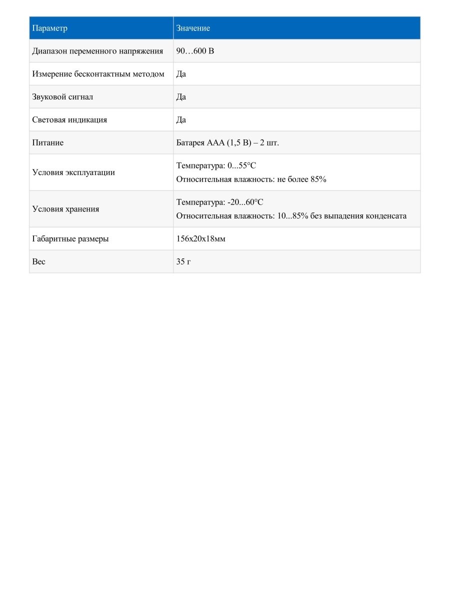 Мегеон к0000013693 Указатель наличия переменного напряжения МЕГЕОН , представляет собой компактный тестер-индикатор, выполненный из пластика высокого качества. Выполнен по международному стандарту безопасности IEC-61010-1 CAT III 600V. Рабочий диапазон составляет от 90 до 600В переменного тока. Указатель напряжения МЕГЕОН имеет звуковое оповещение и световую индикацию, о наличии переменного напряжения. Данный тестер будет являться отличным помощником при прокладке и монтаже и ремонте электрических сетей.
