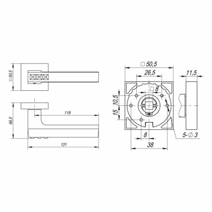 | Длина квадрата ручек | 105 |