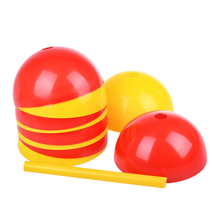Разметчик для спортивных игр состоит из 12 полусфер, изготовленных из высококачественной пластмассы. Это необходимый набор для тренировок, соревнований и активного отдыха: инвентарь для спорта, предназначенный для разметки спортзала, поля или площадки. Компактный разметчик легко устанавливается и собирается.