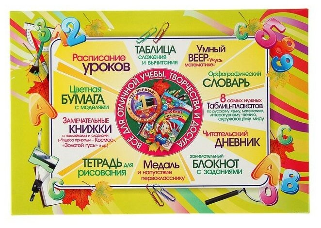 3712205 Лучший подарок первокласснику, 20 в 1 Подготовка к школьному сезону — очень волнительный и ответственный процесс, особенно для тех, кто впервые сядет за парту. И здесь взрослым нужно продумать всё до мельчайших деталей, чтобы дети чувствовали себя на уроках комфортно и уверенно. Лучший подарок первокласснику, 20 в 1 — прекрасный помощник для вас и долгожданный подарок для ребёнка!