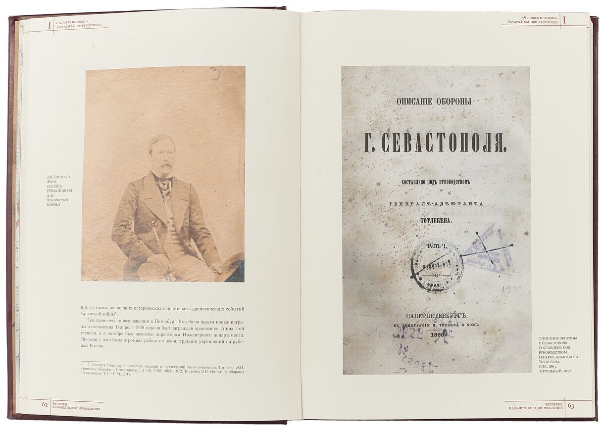 Научное издание посвящено выдающемуся российскому военному инженеру, герою обороны Севастополя, автору многочисленных укреплений рубежей Российской империи графу Э.И. Тотлебену (1818-1884), чей 200-летний юбилей отмечается в нынешнем году. В книге представлены материалы, связанные с его биографией, ролью в развитии военно-инженерного искусства России. Богатый иллюстративный ряд содержит значительное число архивных материалов публикуемых впервые. Издание рассчитано как на специалистов, так и на широкий круг читателей, интересующихся историей Отечества.