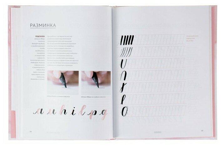 Очень хорошая книга по леттерингу. Приятное девчачие оформление в розовых тонах, страницы глянцевые, много текста и вдохновения. Сначала мне показалась, что очень однообразный и простой шрифт предлагает автор, но если их сочетать, то получаются потрясающие работы. Шрифт автора воздушный, лёгкий, без лишних утяжеляющих элементов, но в тоже время очень востребованный и популярный сейчас. Кроме техники написания и оформления работы, в книге есть глава о компьютерной обработке и о том, где можно леттеринг применить.