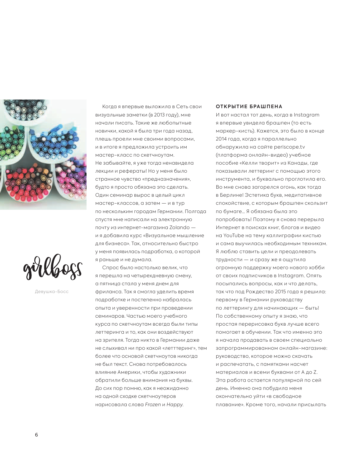Перед вами книга, ставшая в Германии абсолютным бестселлером. Здесь вы найдете теоретический и практический материал по искусству создания шрифтов. Мастер леттеринга Таня "Фрау Хёлле" Каппель расскажет все, что нужно знать про его секреты. Благодаря изложенным здесь практическим советам мир разнообразных и красивых букв станет вам ближе и понятней! Отдельное внимание уделено созданию шрифта на компьютере, так что теперь будет проще делиться своими работами онлайн.
