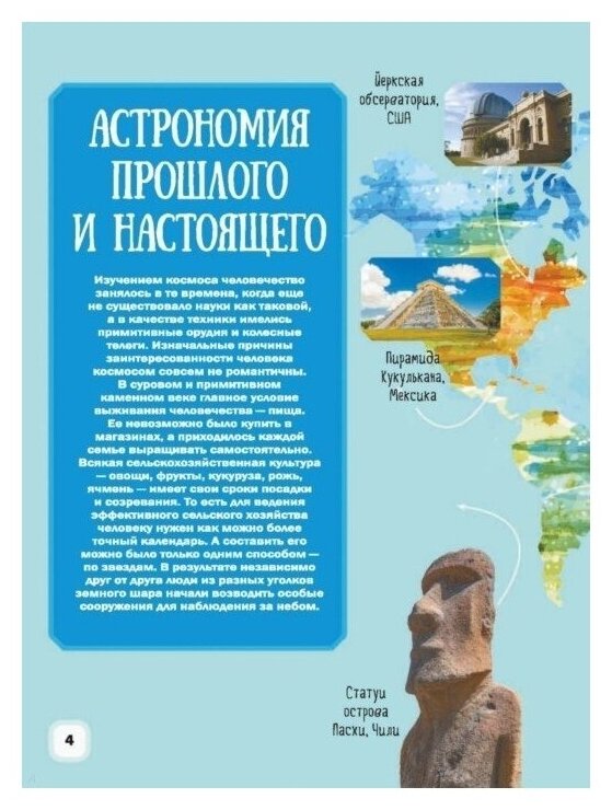 Этот иллюстрированный атлас станет незаменимым помощником юным читателям, которые хотят узнать как можно больше о нашей Вселенной. С ним любителям космоса откроется весь путь, который прошла астрономия от прошлого до настоящего. Ребята, рассматривая реалистичные иллюстрации, познакомятся с устройством Вселенной, разгадают некоторые тайны звезд и созвездий, побывают "в гостях" у планет Солнечной системы, узнают о космических миссиях человечества. Кроме того, в книге содержится множество любопытных фактов и комментариев.