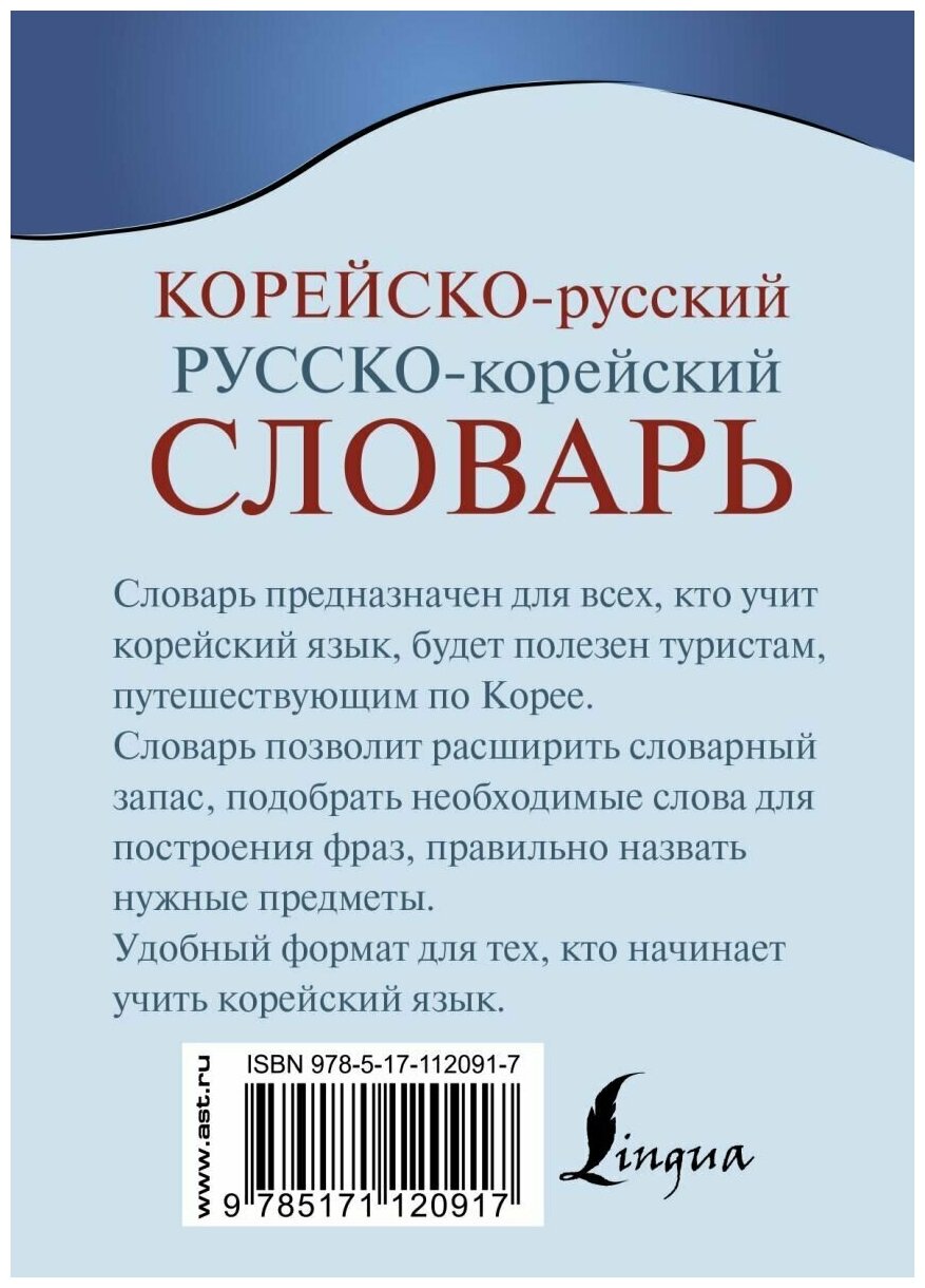 Компактный размер - удобен для частого использования при чтении книг. В словаре коло 15 000 слов - вполне достаточно для начального и среднего уровня изучения. Все корейские слова имеют транскрипцию ( слегка упрощенную) как в корейской так и в русской части. Это поможет, если трудно, прочитать незнакомое слово. Некоторые слова имеют несколько вариантов перевода - для разных речевых ситуаций они могут иметь разное смысловое значение ( как и в любом языке). Словарь написан в соавторстве с носителем языка - гарантия современной употребительной лексики. Из-за небольшого размера и крупного шрифта специально купил его для постоянного использоания.