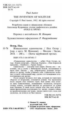 Книга: Измышление одиночества (Немцов Максим Владимирович (переводчик), Остер Пол Бенджамин); Эксмо, 2018