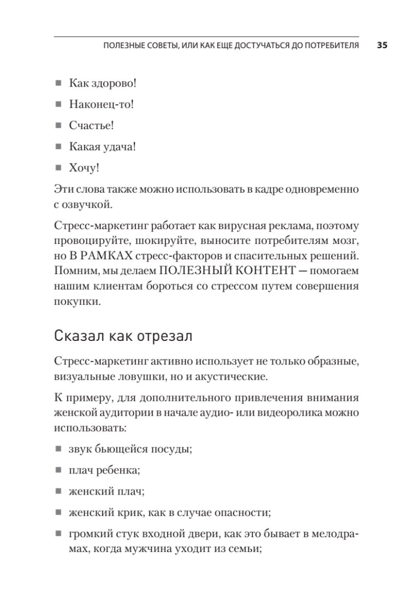 - Очень жаль, что после прочтения книги придется переделывать нашу маркетинговую стратегию. Точнее, выкинуть прошлую стратегию на помойку и сделать новую - в рамках стресс-маркетинга. Жаль, что книга не попалась в руки по-раньше.