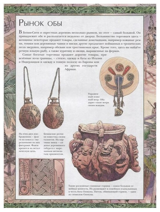 Приобрел книгу Древний африканский город автор Фиона Макдональд из серии "Красочные путеводители" это уже вторая книга из этой серии в мой библиотеке. Книга большого формата, рассказывается в ней о жизни одного из западноафриканских народов, народе эдо. Книга хорошо иллюстрирована, это своего рода историческое путешествие в жизнь средневекового западноафриканского города, читатель побывает во дворце правителя, а также на рынке, посетит религиозные церемонии этого древнего народа помимо этого читатель узнает как выглядели жители той эпохи, что носили и что ели, в конце книги небольшой словарь терминов которые встречаются в книге. Будет интересно и взрослым и детям