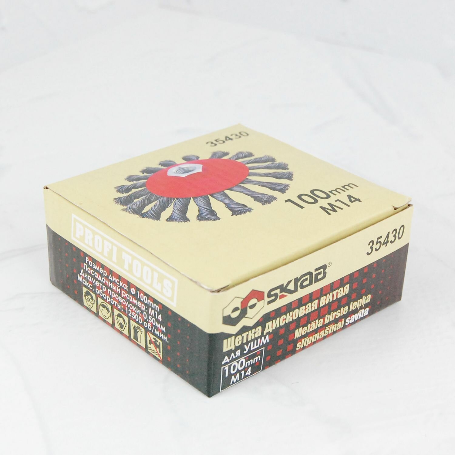 Кордщетка Skrab , 100 мм плоская витая с наклоном для УШМ гайка М14
