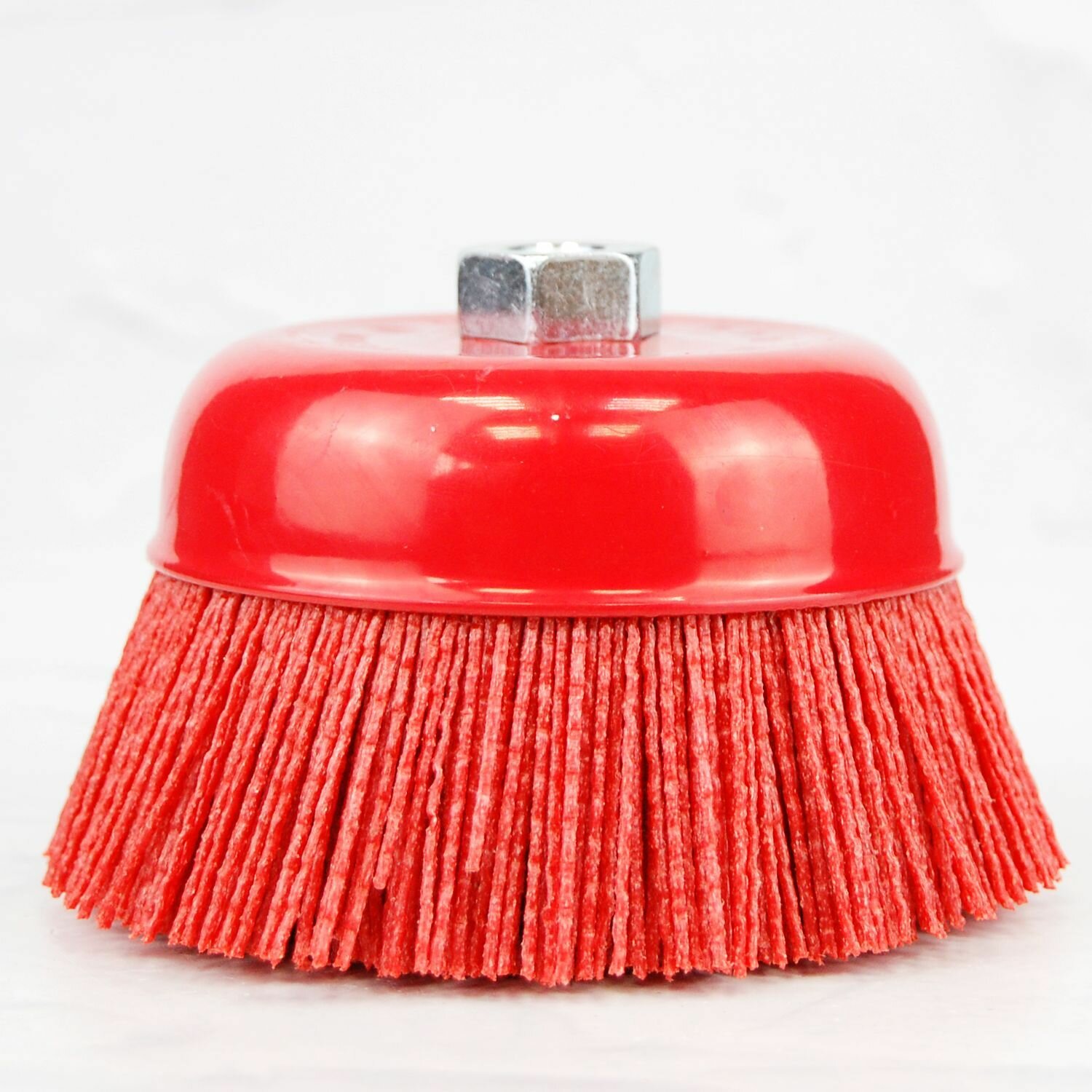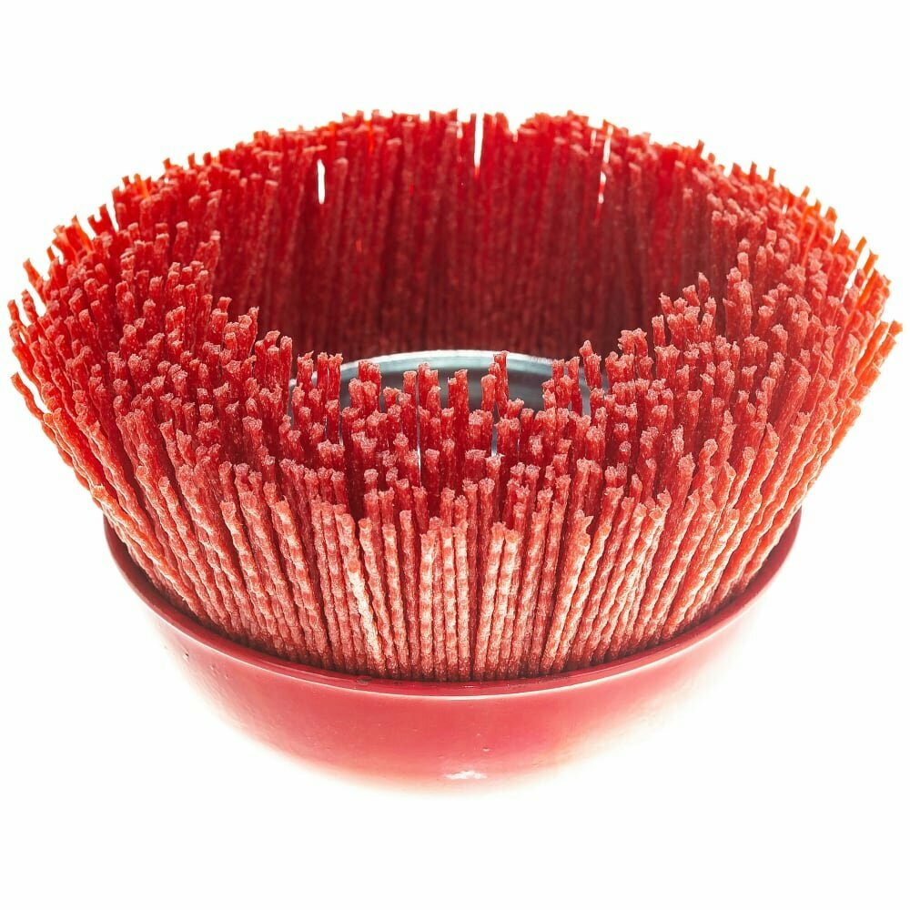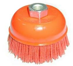 Описание щетки чашки для УШМ SKRAB D125 мм нейлон Корщетки-чашки с нейлоновым ворсом идеально подходят для деликатного шлифования металлов, цветных металлов, текстурирования (браширования) дерева. Щетка чашечная нейлоновая для ушм - самая популярная насадка для обработки бруса при помощи болгарки. Полимер-абразивные чашечные щетки также используются для снятия лакокрасочного покрытия при помощи болгарки (УШМ).