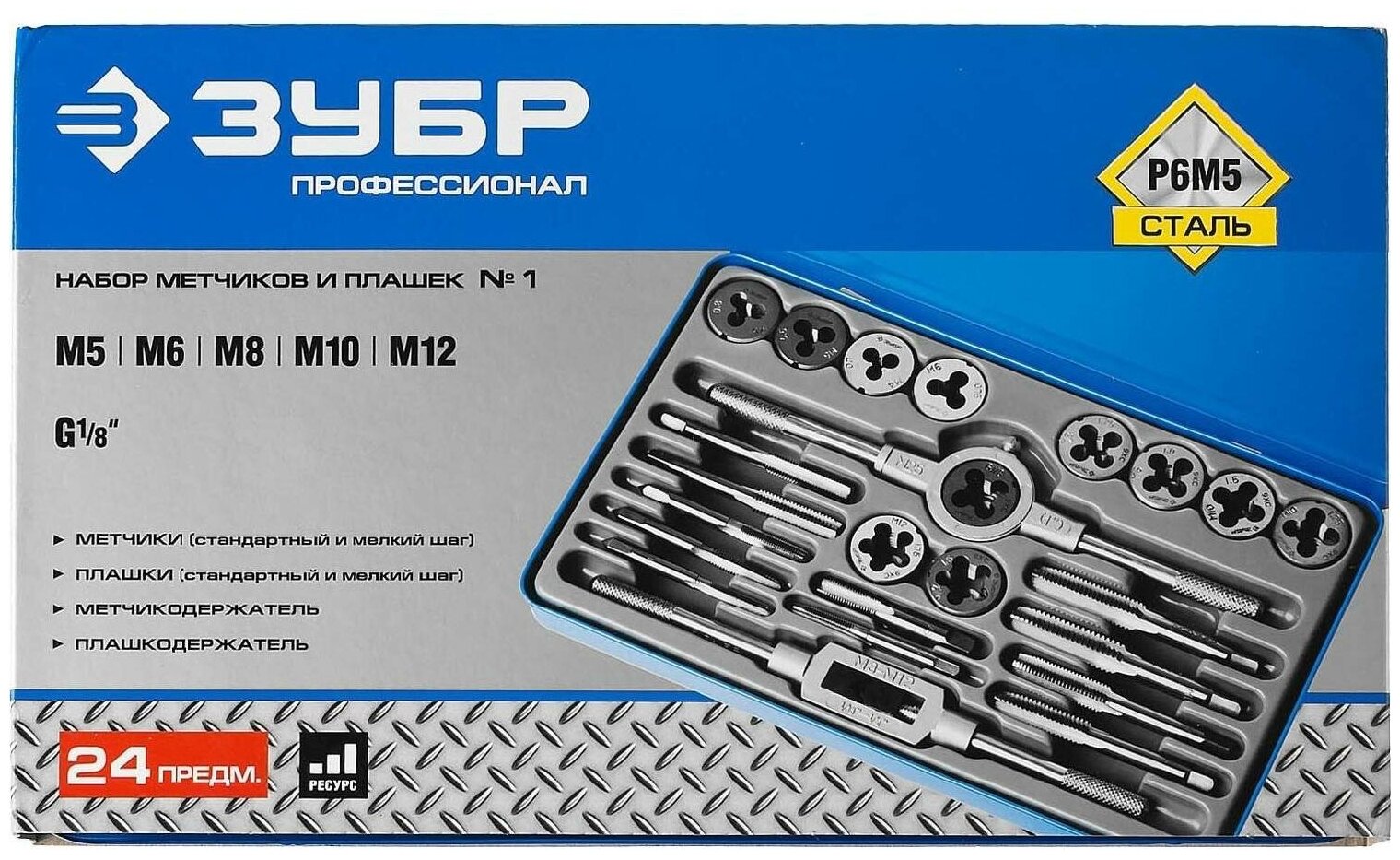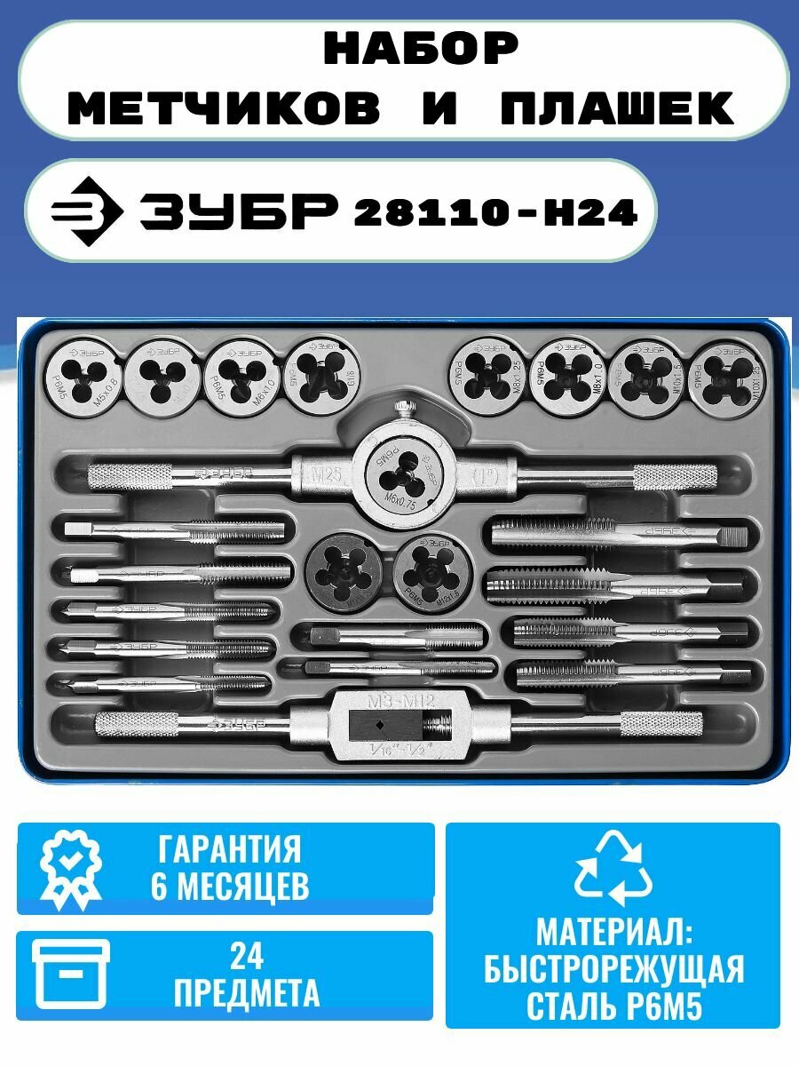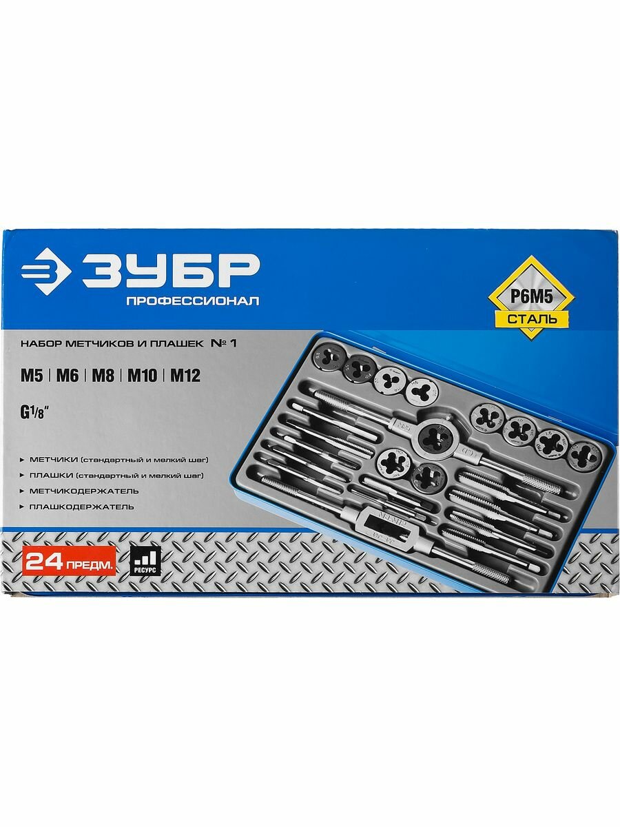 Набор метчиков и плашек Зубр Профессионал 28116-H24 24 предмета, сталь Р6М5