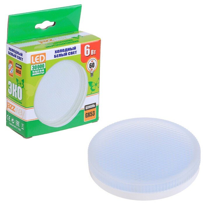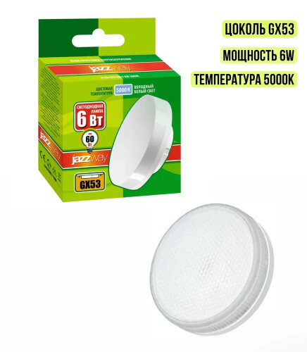 Характеристики JazzWay PLED-ECO-GX53 6Вт 5000К FROST 460лм 4897062852007