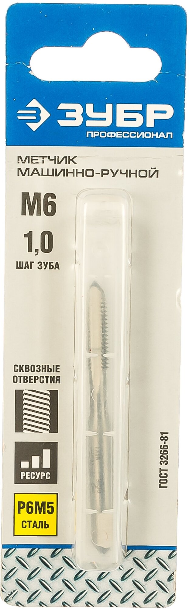 ЗУБР М6 x 1.0 мм, сталь Р6М5, метчик машинно-ручной, Профессионал (4-28003-06-1.0)