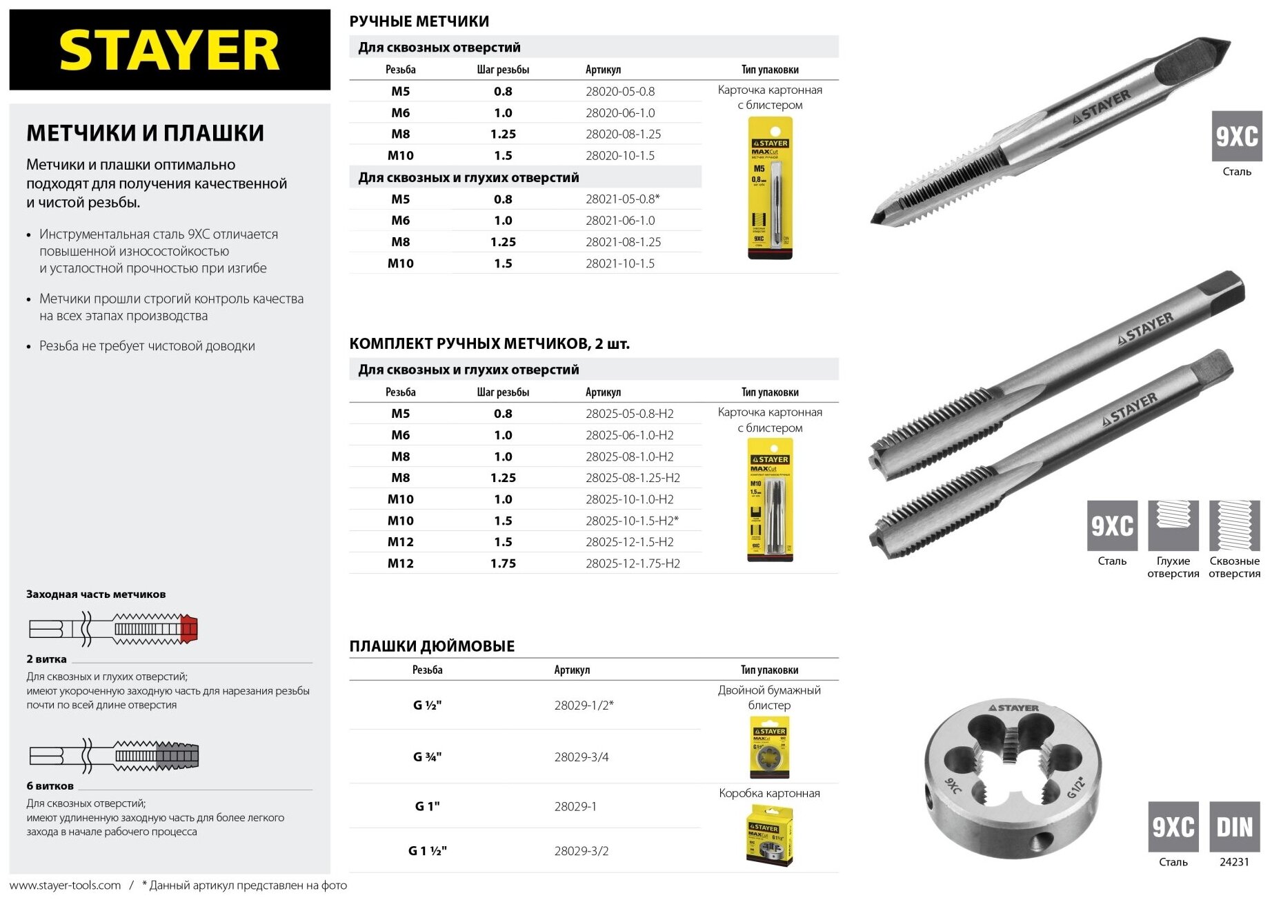 Метчики STAYER оптимально подходят для получения качественной и чистой метрической резьбы в сталях и цветных металлах.