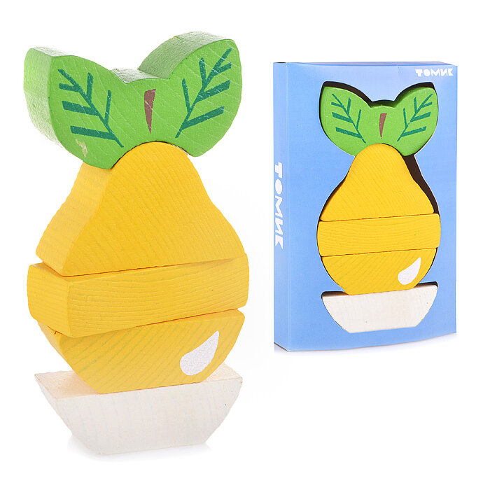 Пирамидка безосевая «Груша» прекрасная игрушка для развития мелкой моторики, пространственного восприятия и умения собирать детали в единое целое. Ребенку, используя элементы пирамидки, необходимо собрать грушу. Это можно делать как в горизонтальной плоскости, так и в вертикальной. Детали яркие, крупные, хорошо обработаны и прокрашены, что исключает возможность малышу пораниться.