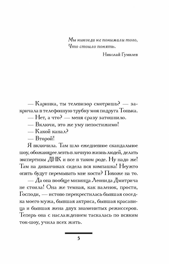 Пять лет назад Карина потеряла горячо любимого мужа, и, кажется, готова к новой жизни. Однако прошлое то и дело напоминает о себе, порой болезненно и неприятно. И все-таки именно очередная встреча с прошлым расставит все по своим местам и Карина, наконец, поймет то, чего не поняла в ранней юности.