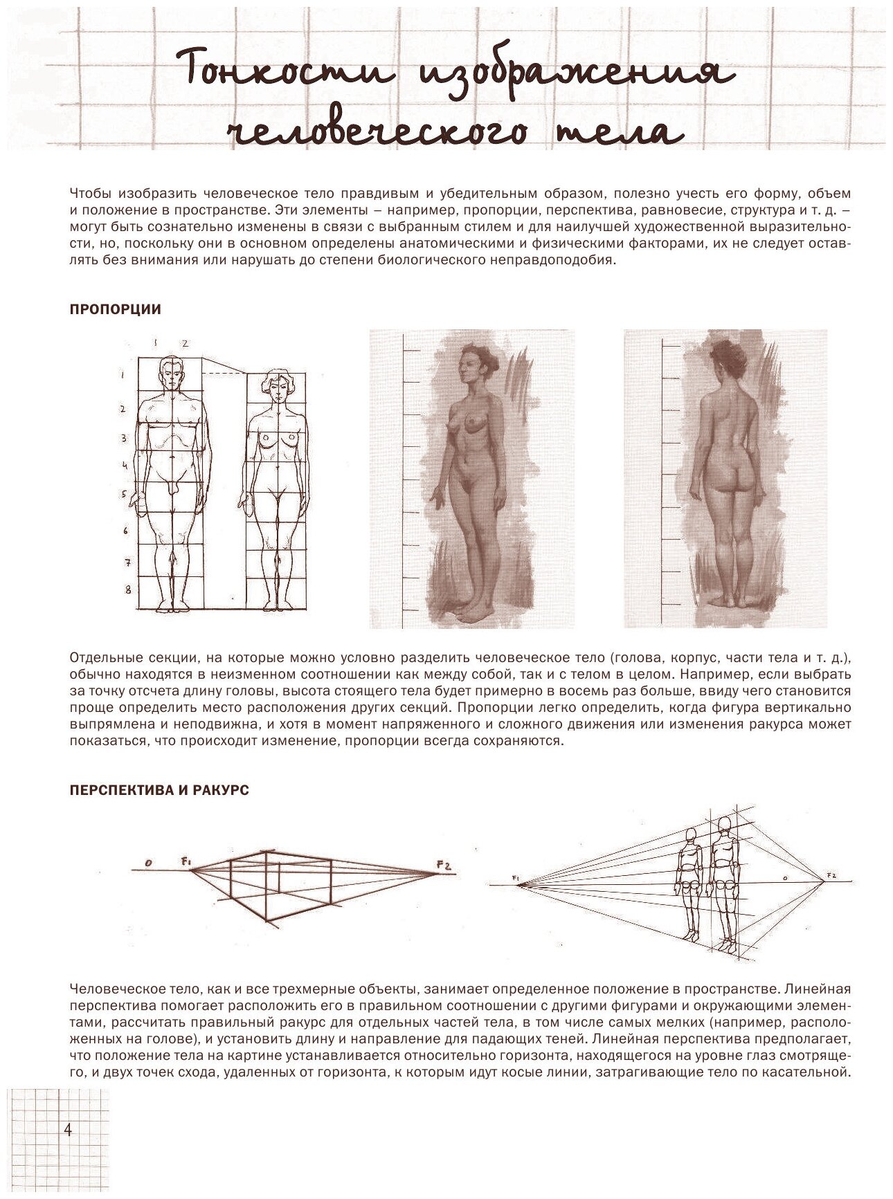 В книге рассматриваются вопросы построения рисунка человеческого тела в движении. На основе предложенных схем и моделей, расположенных по сеткам, можно создавать свои собственные построения и оттачивать навыки. Рисование по сеткам- один из наиболее удобных способов воспроизведения. Обеспечивая, с одной стороны, значительную точность при переносе основных линий структуры изображения, он оставляет, однако, широкую свободу исполнения, когда после переноса основных пропорций и приблизительных форм, можно переходить к следующим стадиям работы