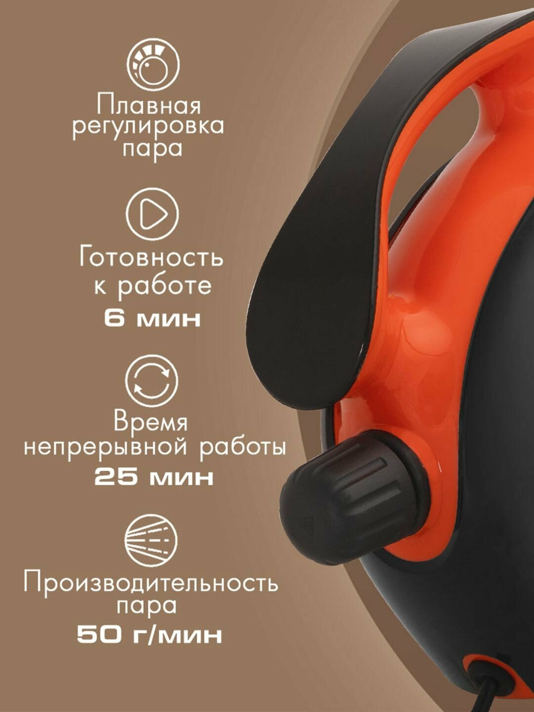 Особенности и дополнительные функции: Полный комплект насадок обеспечит эффективную очистку и дезинфекцию любой поверхности. Удобен в эксплуатации: можно повесить на плечо, носить в руке или поставить на пол. Индикация готовности пара и отсутствия воды в баке. Температура пара достигает 100°С, что позволяет делать дезинфекцию без специальных химических средств. Защита от детей предотвращает возможные травмы, связанные с использованием прибора. Отсек для хранения мелких аксессуаров.