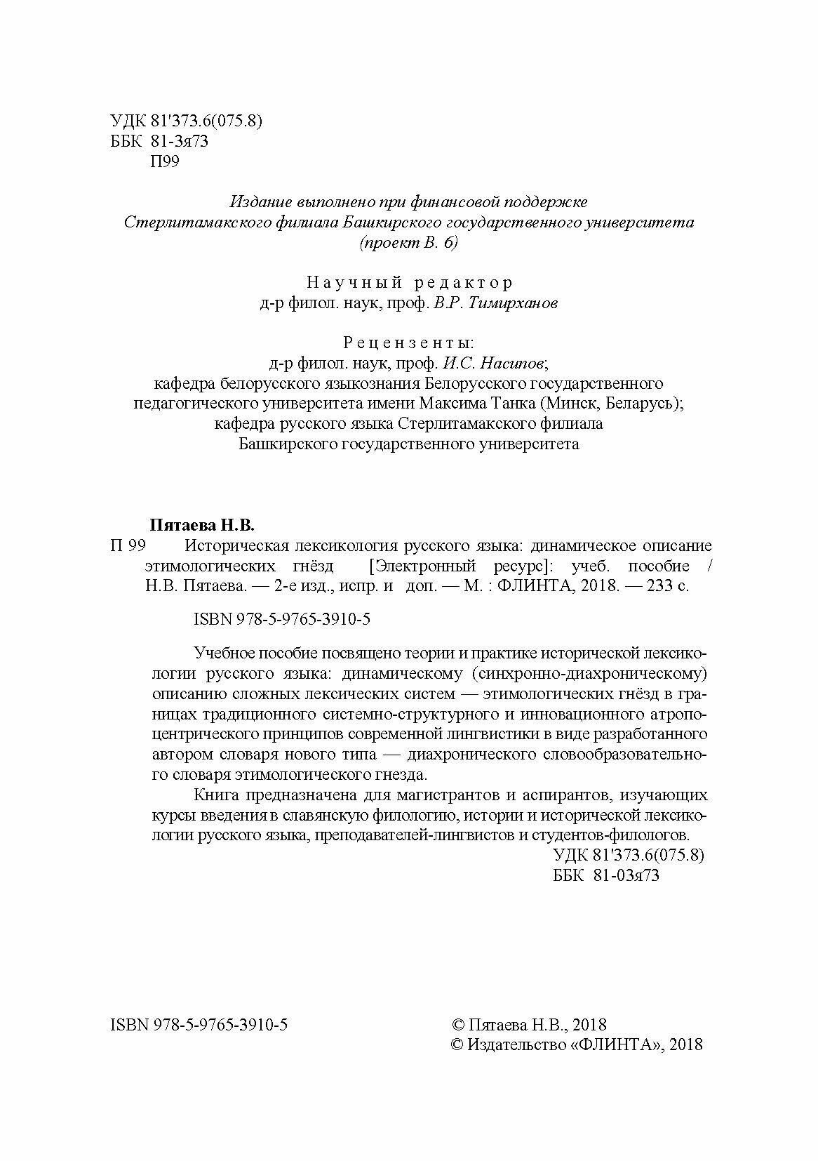Историческая лексикология русского языка (Пятаева Наталия Вячеславовна); Флинта, 2018