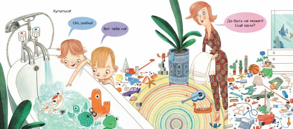 Я, если честно, не знакома с другими произведениями автора и иллюстратора. Книга порадовала своим большим форматом, огромным я бы сказала. Обложка твердая, странички плотные. Текста в книге не много, но он забавный. И идут повторения, как в припеве песни: Крылья наружу - и в путь-дорогу! Крылатая Ванна спешит на подмогу! Детям такое нравится. Моей дочери (4,5г) книга очень понравилась. Мы купили несколько разных книг, эту она просила перечитывать несколько дней подряд. Очень ей понравились герои и их спасательные операции.)) А вообще книга о том, как можно весело купаться в ванне, придумывать игры, быть спасателями, тушить пожары, мыть грязных свинюшек, поить кенгуру. Хорошая книга простым детским слогом и словечками (чу-чу-чу, ням-ням, хвать).