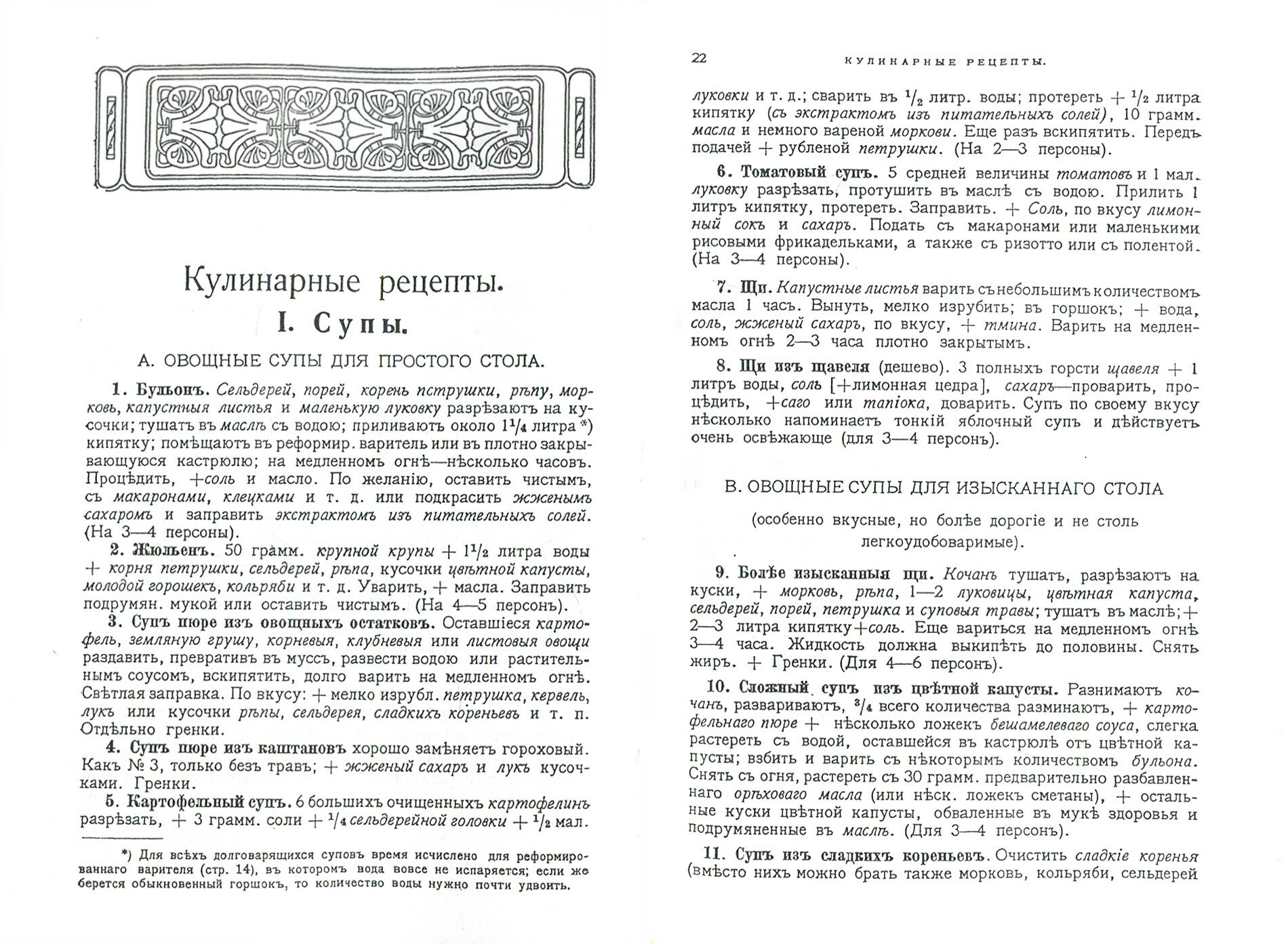 Издание книги репринт 1913 года. Предисловие написано автором Маргаритой Брандербург в 1906 году, и предисловие Доктора медицины S. Moller , написанное в 1906 году. Руководство по реформированию вегетарианской кухни. Интересно, уже в те годы идет разговор о реформировании кухни))
