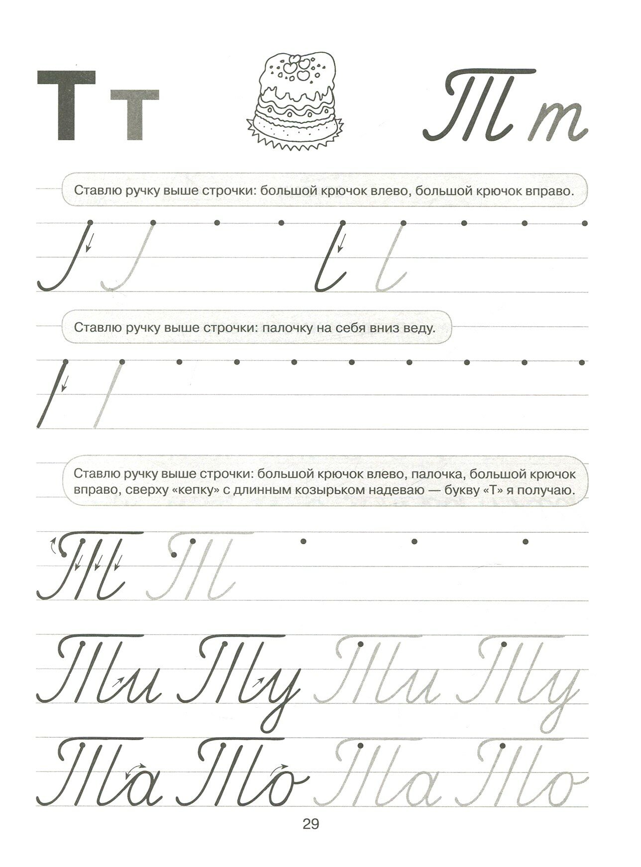 - алгоритм написания буквы дан в виде рифмовки, которая запомнится без усилий