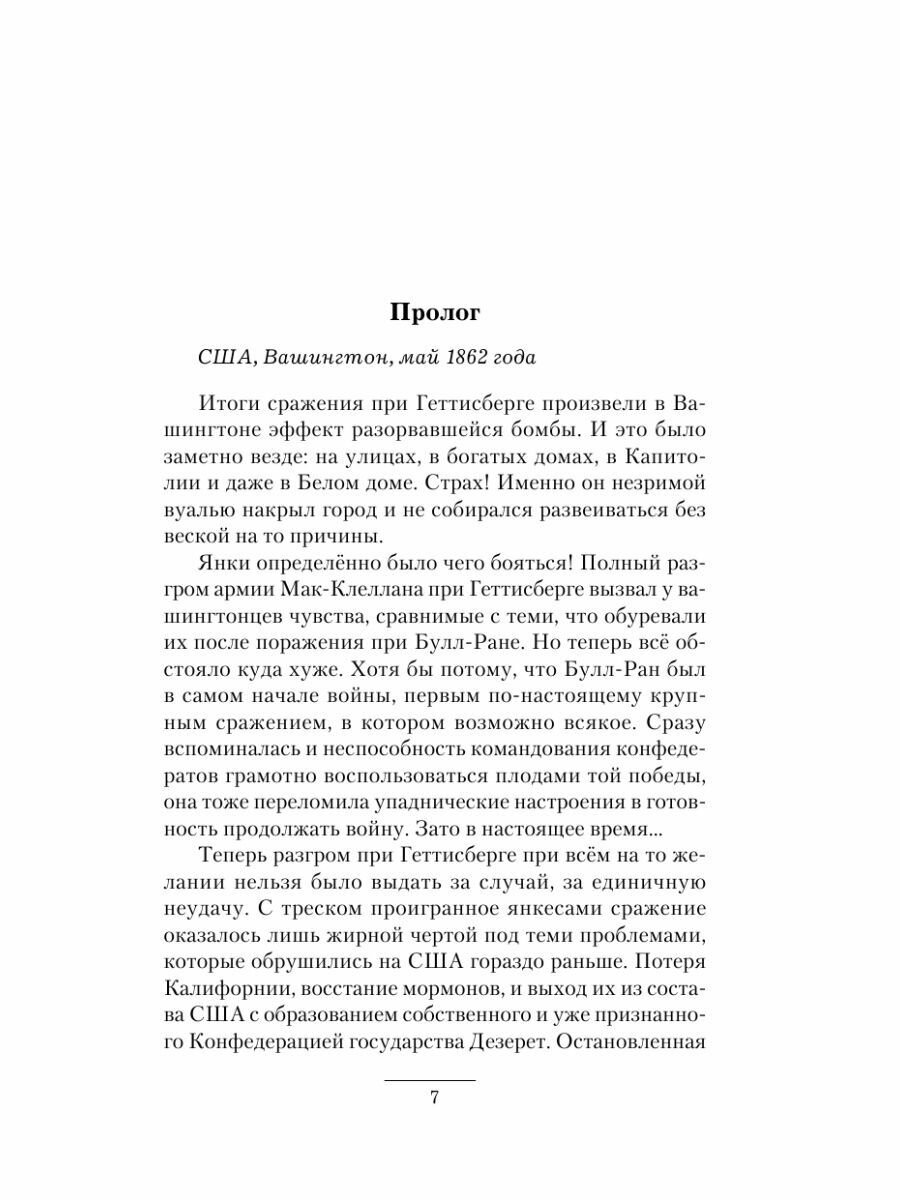 Конфедерацией одержаны важные победы, и государство янки трещит по швам. Вот только далеко не всех влиятельных игроков устраивает подобный исход. Особенно хитрецов родом с «туманного Альбиона», знающих, какой ложкой следует мешать адское варево интриг. Почему? Хотя бы по той причине, что терпящим поражение легко навязать кабальные условия в обмен на политическую и финансовую поддержку, да и окоротить набирающую силу Конфедерацию тоже есть желание. Вот и приходится Виктору Станичу менять положение военачальника и «серого кардинала» на официальное. Да и нерешительные лидеры Конфедерации начинают становиться тормозом на пути запланированного…