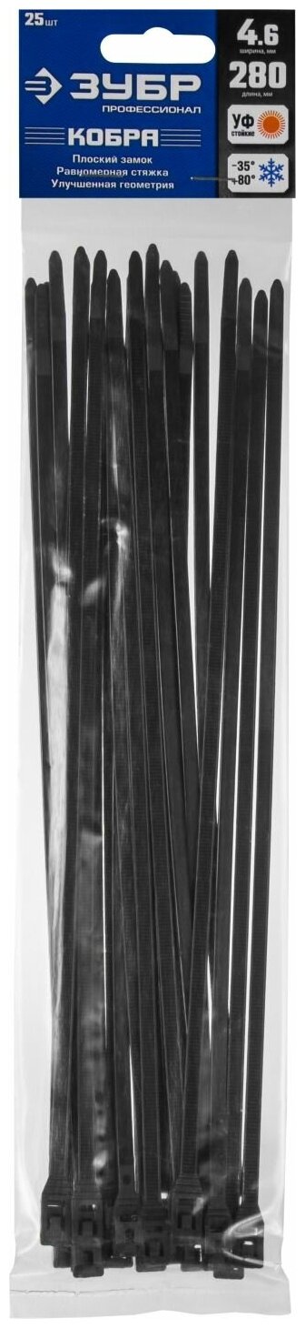 Нейлоновые кабельные стяжки ЗУБР 30935-46-280 КОБРА
