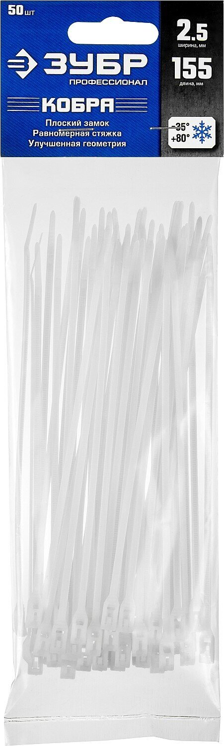 Нейлоновые кабельные стяжки ЗУБР 30935-25-155 КОБРА