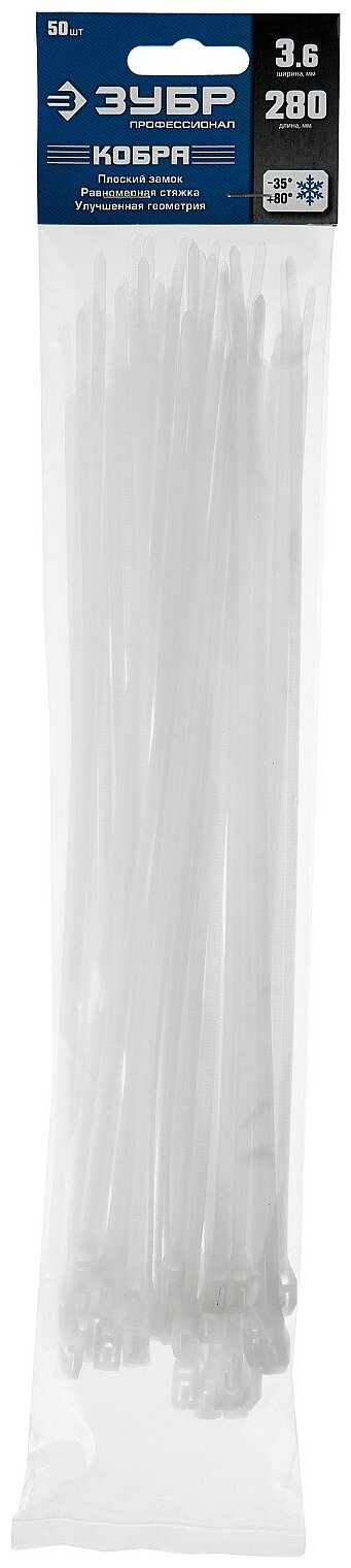 Нейлоновые кабельные стяжки ЗУБР 30930-36-280 КОБРА