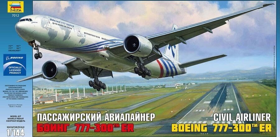Boeing 777-300 ER — самый крупный в мире двухмоторный реактивный пассажирский самолёт. И именно он установил абсолютный рекорд дальности для пассажирских самолётов: 21601 км. Такие показатели не могли нас не заинтересовать. И мы создали единственную пластиковую модель данного самолета.При конструировании самолета мы вдохновились словом «удобство». Крупноузловая сборка позволит облегчить процесс окраски. А точность геометрии прототипа, достигнутая благодаря сотрудничеству с конструкторским бюро Boeing, позволит получить качественную модель прямо из «коробки». Фишкой модели является вращающийся вентилятор в двигателе, который уже стал визитной карточкой компании «Звезда».Набор состоит из 147 деталей в масштабе 1/144.