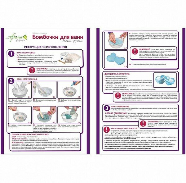 | Состав набора | отдушка - 1 шт; морская соль - 1 шт; лимонная кислота - 1 шт; пищевая сода - 1 шт; краситель - 1 шт; формочки - 2 шт; палочки; перчатки; одноразовая маска - 1 шт |