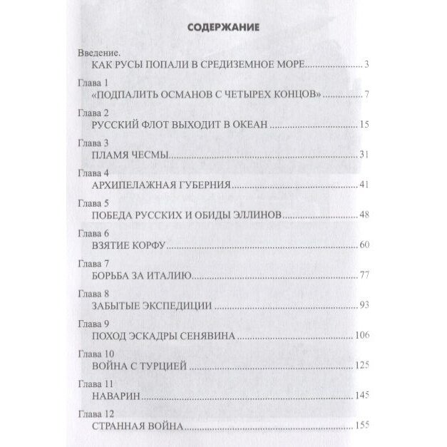 Лёгкая для чтения, прежде всего - из-за удачной темы - освоение русским военно-морским флотом Средиземноморья - научно-популярная книга. От пролога - с легендарным походом русов до эпилога - прозябание в Тартусе вполне увлекательно рассказано о походах кораблей России в эту колыбель европейской цивилизации и битвах, прославивших ее флот. Кстати, аннотация не права. Линейный корабль "Ефстафий" погиб в первой фазе Чесменского боя, так что не только "Пересвет" потеряли в бою.