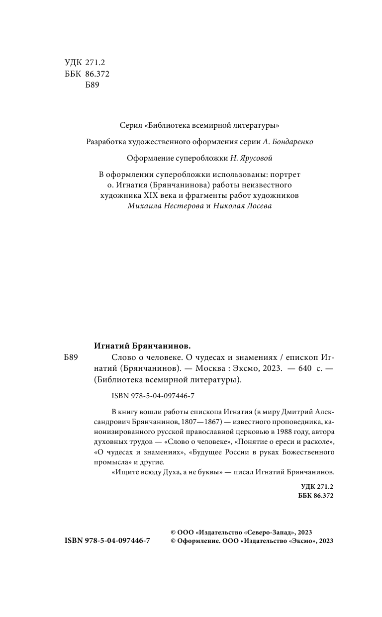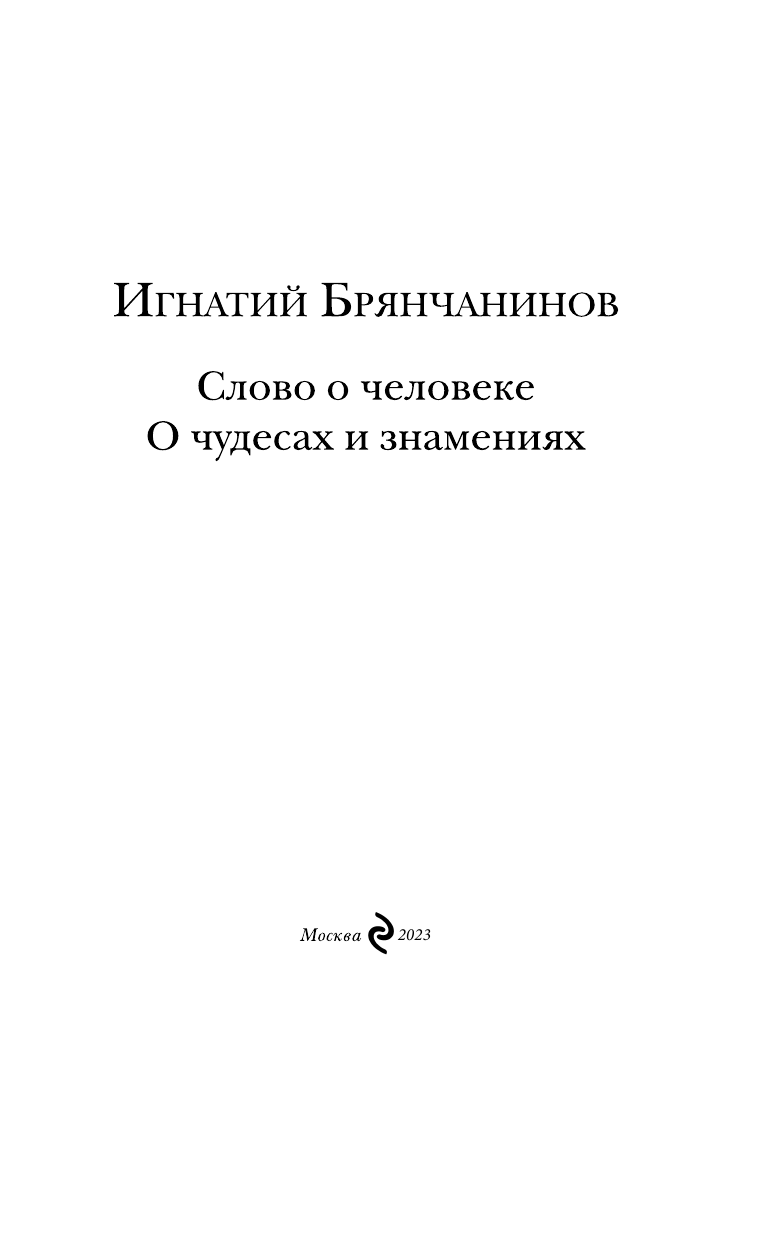 Слово о человеке. О чудесах и знамениях (Святитель Игнатий (Брянчанинов)); Эксмо, 1865
