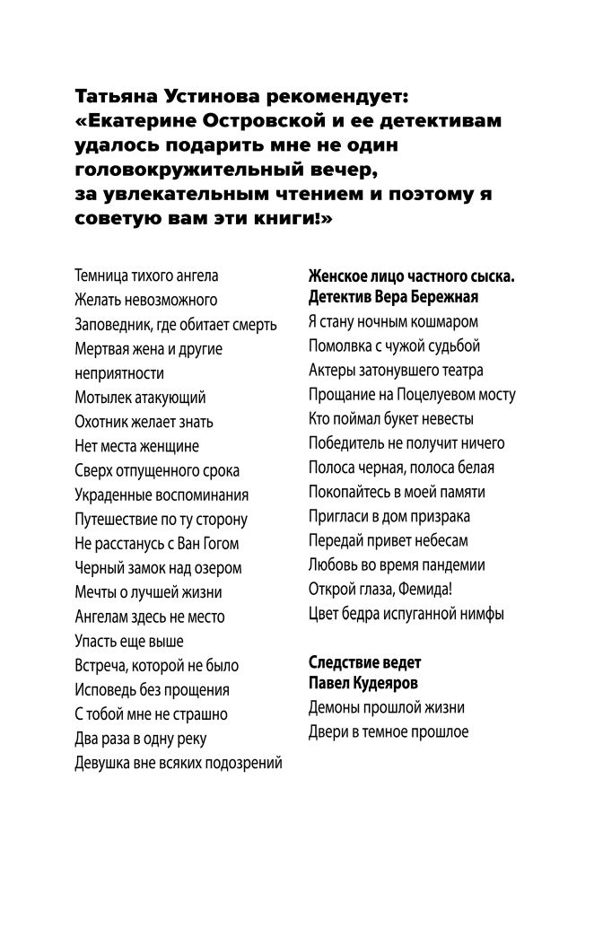 | Серия | Татьяна Устинова рекомендует |