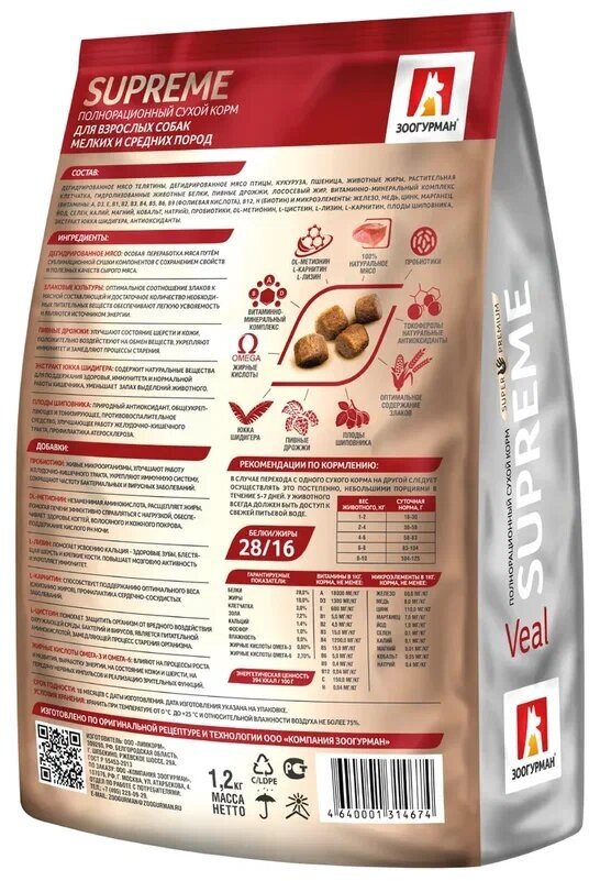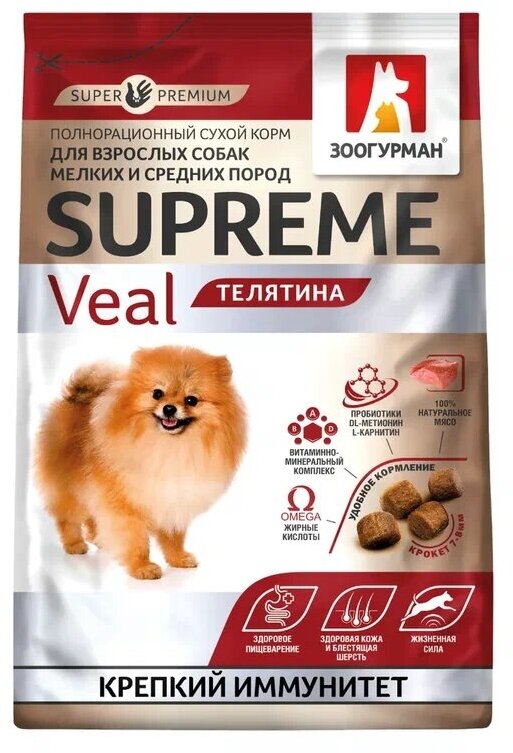 Сухой корм Зоогурман Supreme для взрослых собак мелких и средних пород телятина 1.2 кг (4674)